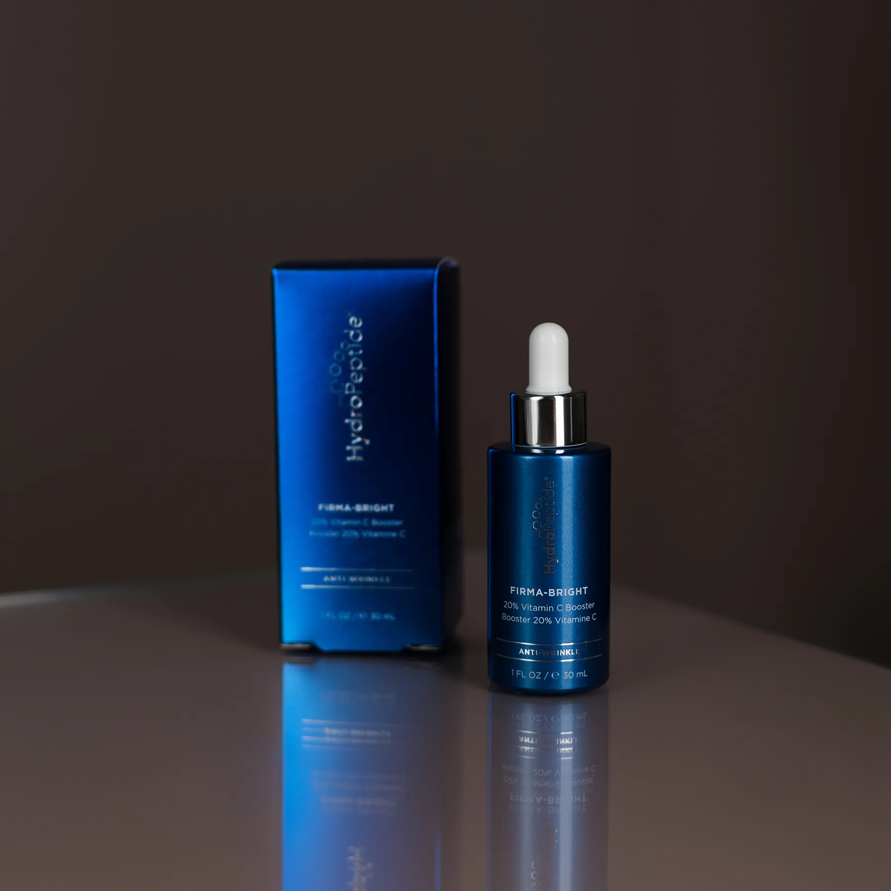 FIRMA-BRIGHT HydroPeptide – потужний концентрат з вітаміном C і пептидами, який освітлює та зміцнює шкіру, розгладжує зморшки, вирівнює тон і дарує сяйво, забезпечуючи захист від вільних радикалів та ознак старіння.