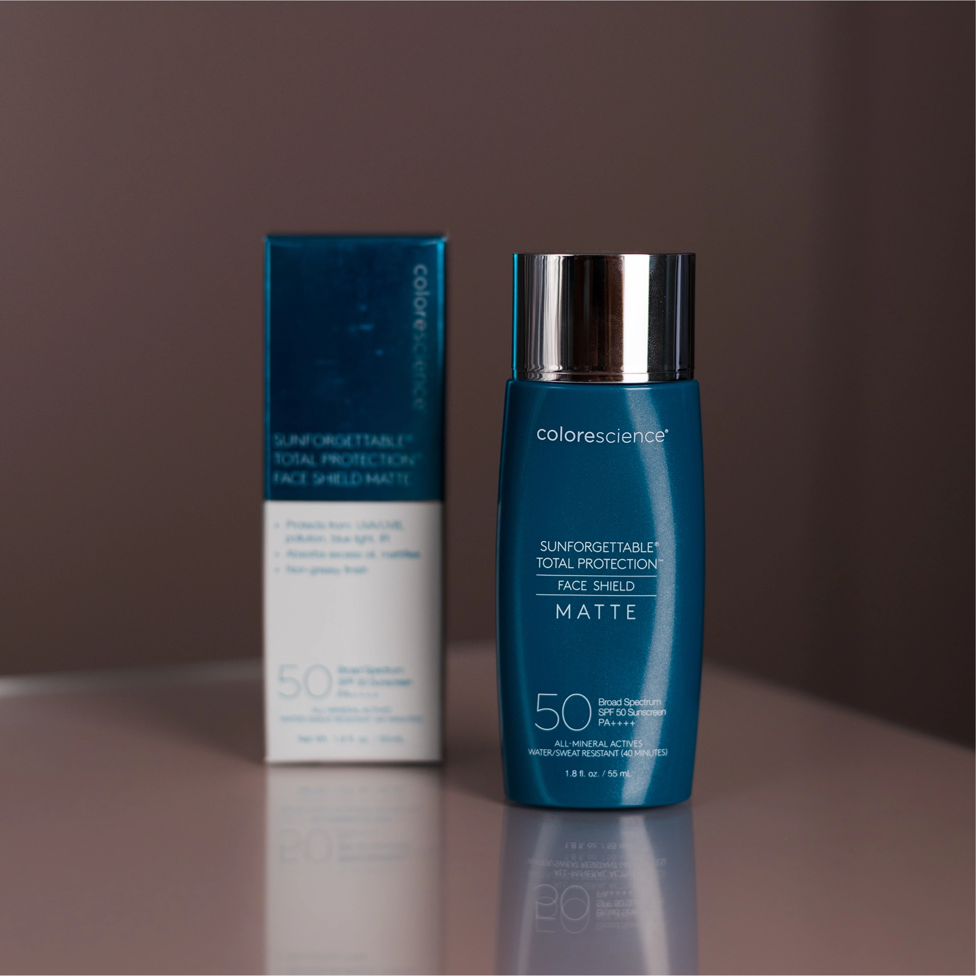 Sunforgettable Total Protection Face Shield Matte SPF 50 забезпечує надійний сонцезахист, догляд і контроль жирності шкіри в одному засобі. Легка рідка текстура крему легко розтушовується, тоноване покриття вирівнює тон і маскує недоліки, а силіконова пудра контролює себум і забезпечує тривалий матовий ефект. Продукт ідеально підходить для щоденного використання на жирній і комбінованій шкірі.